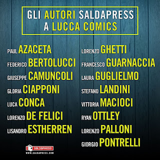 SaldaPress, che celebra tra le altre cose proprio a Lucca i 10 anni di Skybound e i 20 anni dalla propria fondazione, avrà all'interno del padiglione un lungo elenco di straordinari autori, che dedicheranno e sketcheranno i volumi per i fan. Un luogo unico e speciale, dunque, nel quale si avvicenderanno Paul Azaceta, Federico Bertolucci, Giuseppe Camuncoli, Gloria Ciapponi, Luca Conca, Lorenzo De Felici, Lisandro Estherren, Lorenzo Ghetti, Francesco Guarnaccia, Stefano Landini, Vittoria Macioci, Ryan Ottley, Lorenzo Palloni e Giorgio Pontrelli.
